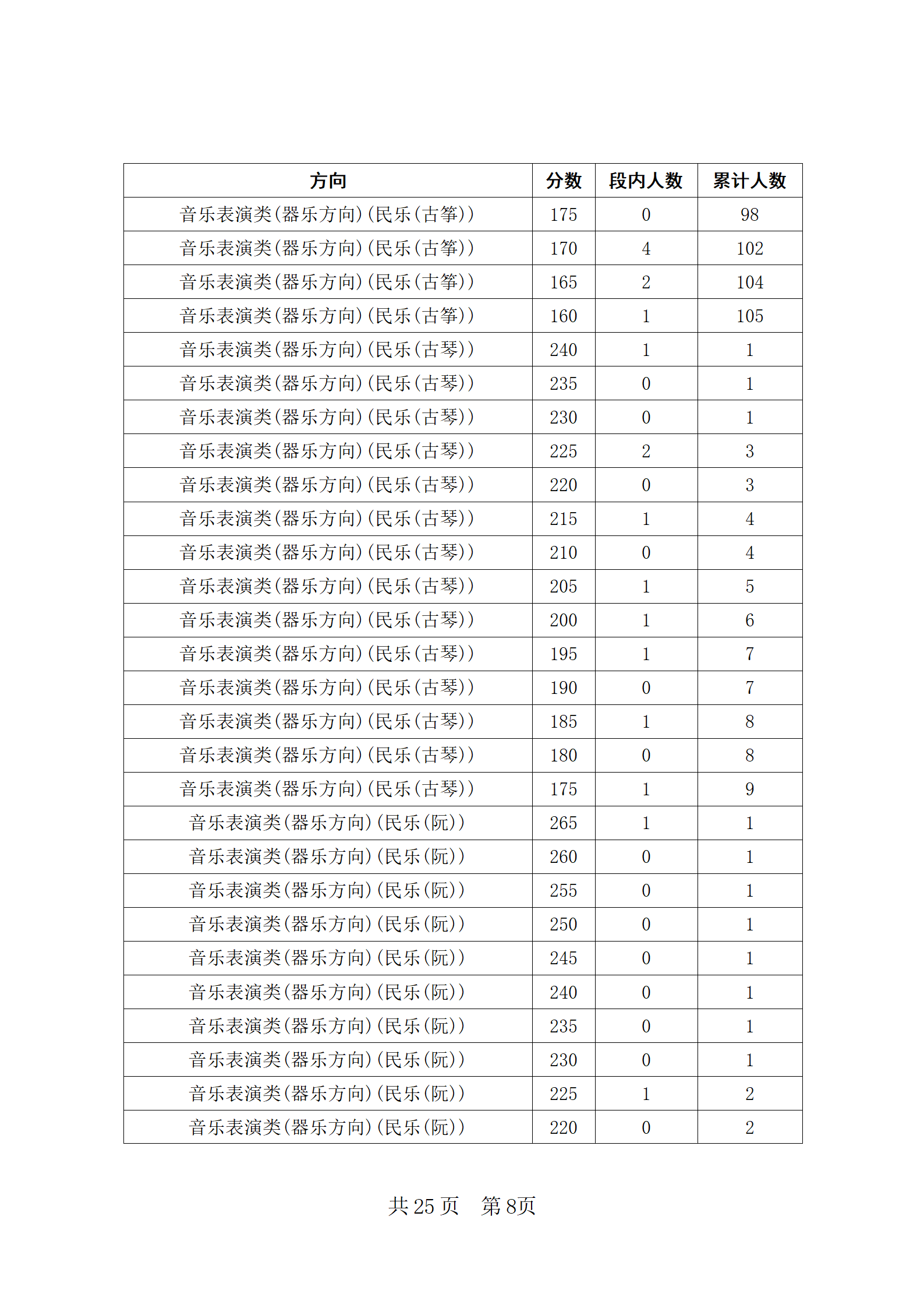 四川省2024年普通高等学校招生音乐类专业统考合格线上五分段统计表