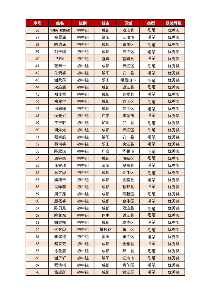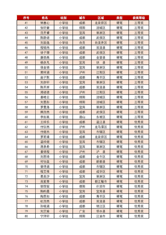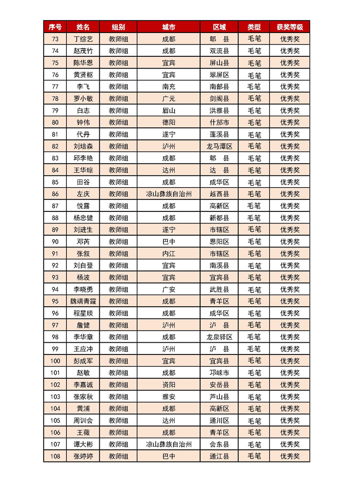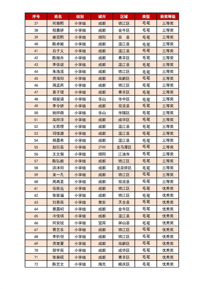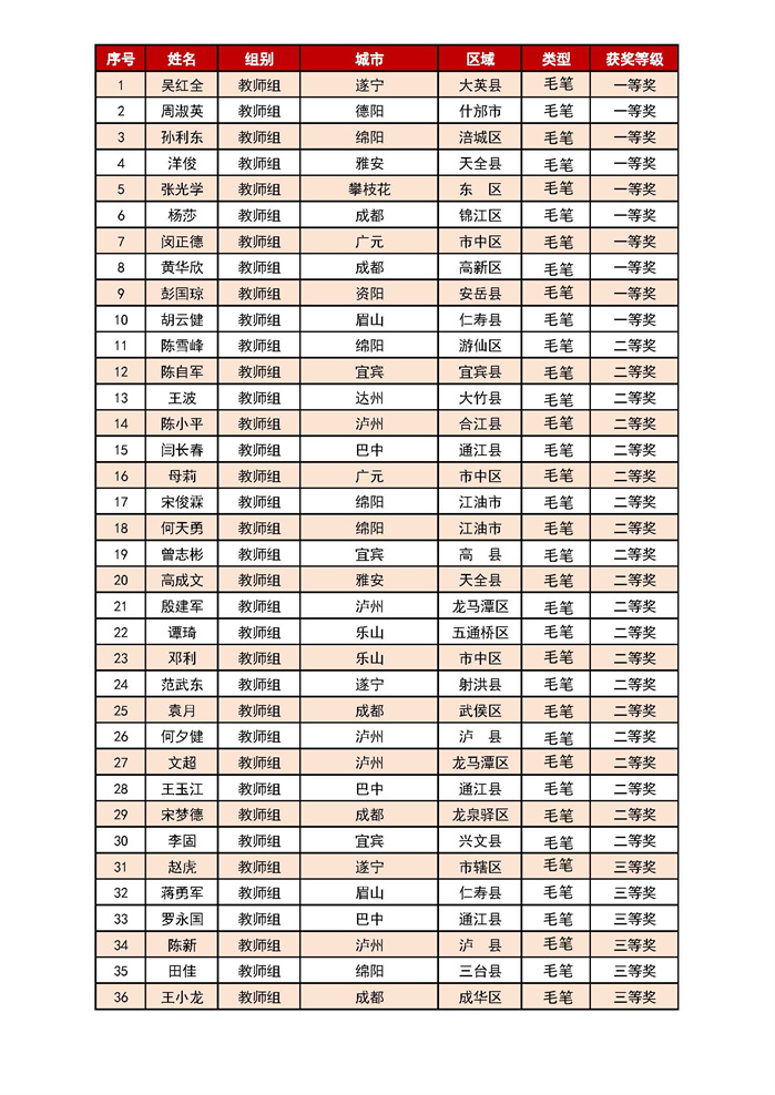 四川省首届“书法人生·墨香校园”主题书法大展公益活动获奖名单已于5月13日-5月17日公示,根据活动安排,现将获奖名单公布如下: