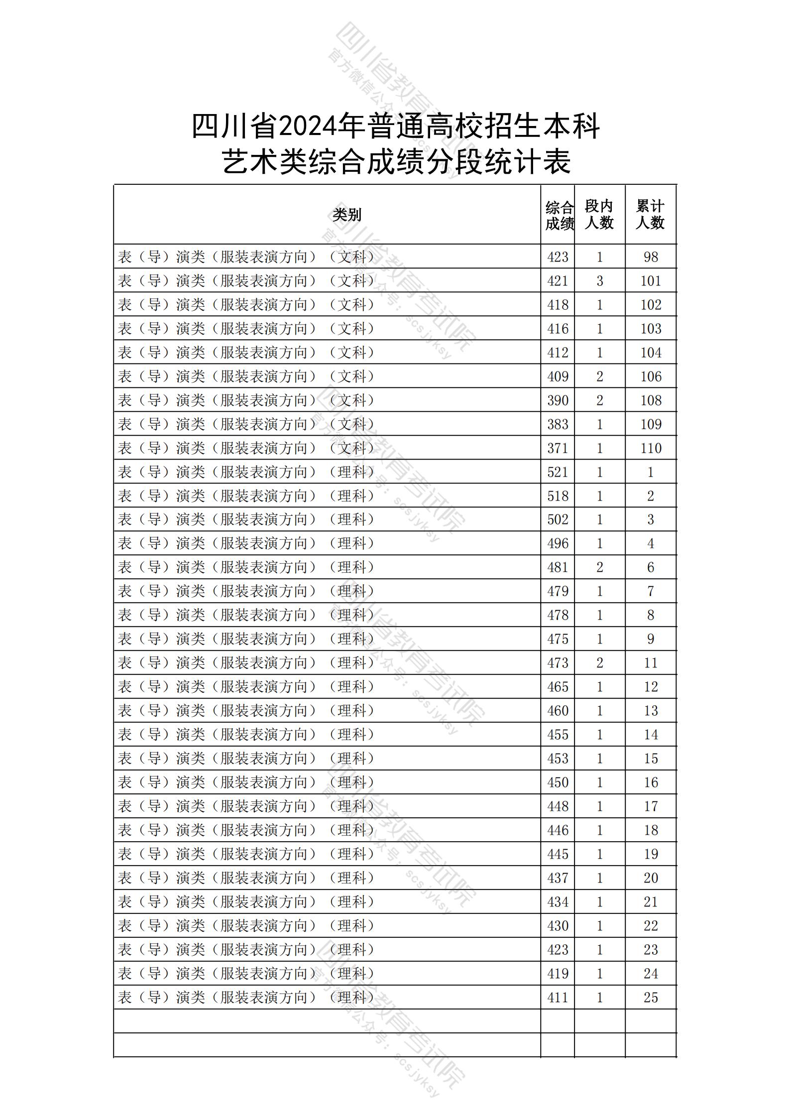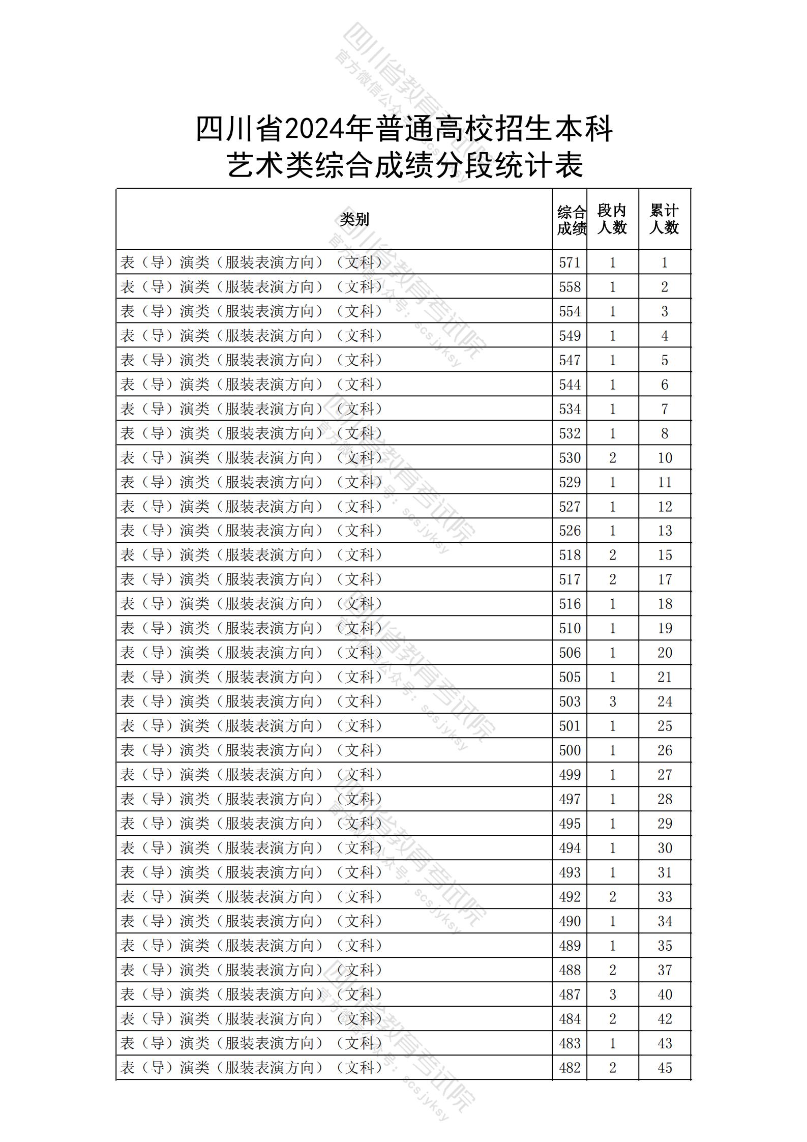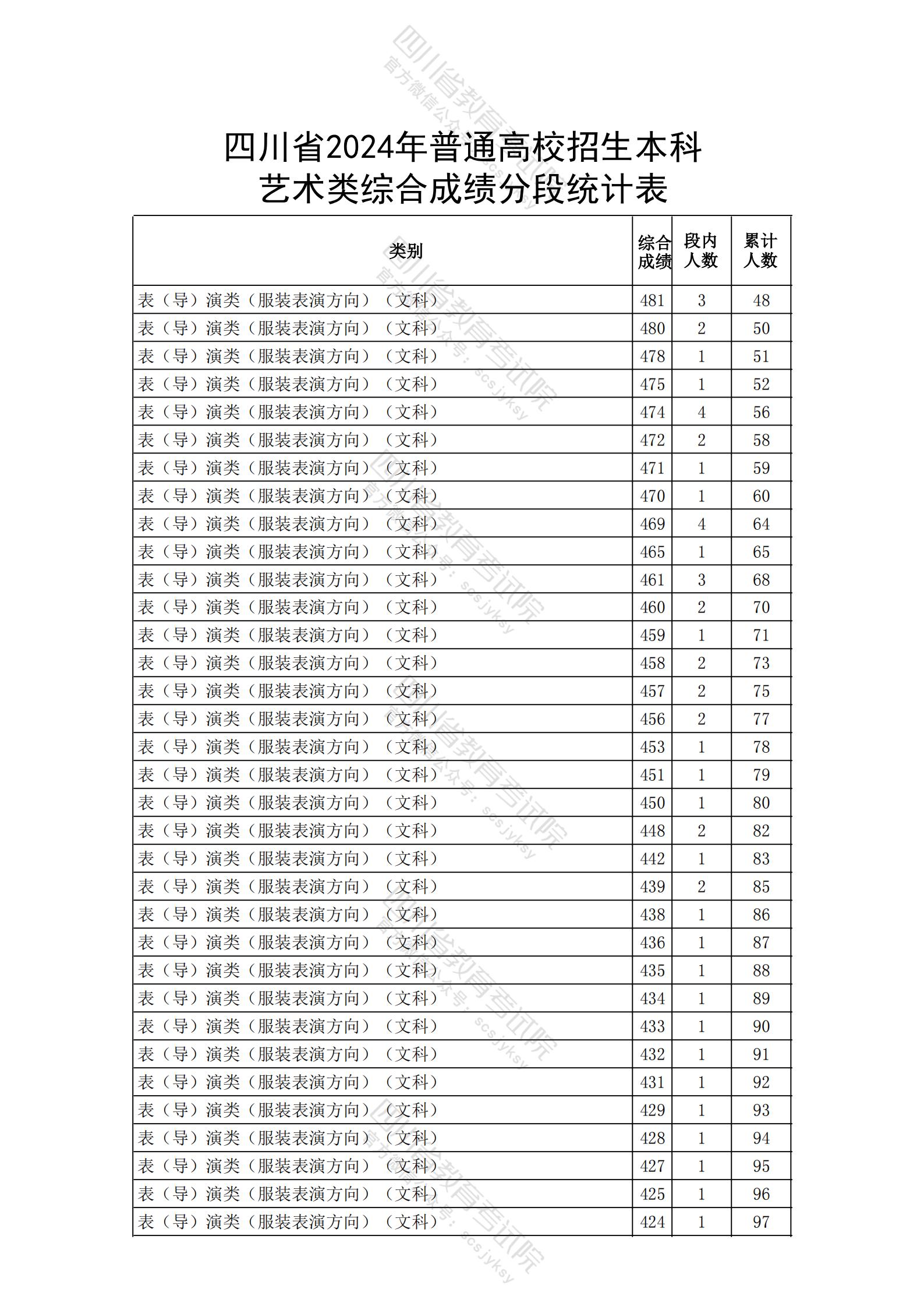 四川省2024年高职单招中职类考生成绩分段统计表