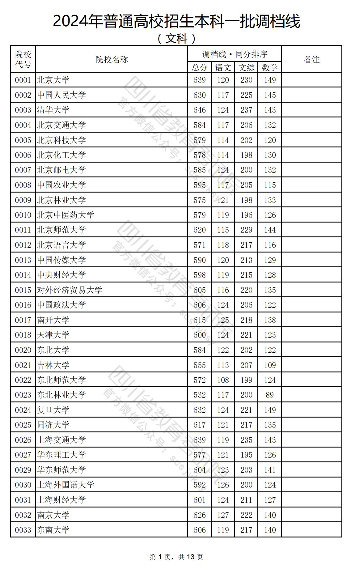 我省2024年普通高校招生本科一批已投档。为方便广大考生和家长及时了解录取信息,省教育考试院按文、理科发布今年普通高校招生本科一批调档线。川小招在这里特别提醒,之前有机构在网络上传播的部分院校在川招生调档线均不是我院官方发布,请大家务必小心,不要轻易采信非官方渠道的信息,以我院官方发布的为准。