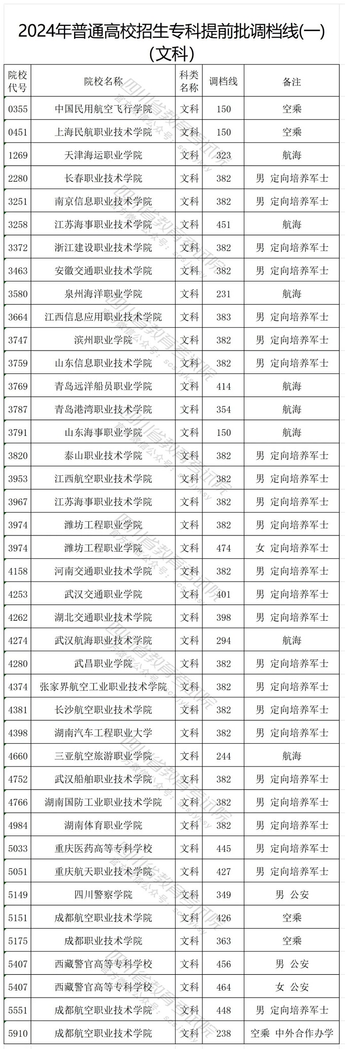 重磅!2024年普通高校招生专科提前批调档线(一)公布