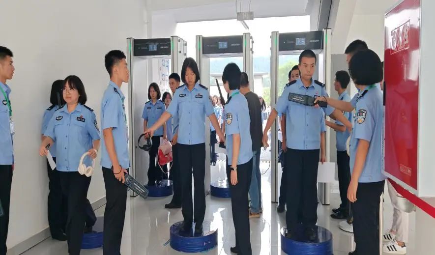 (考生通过安检门入场)