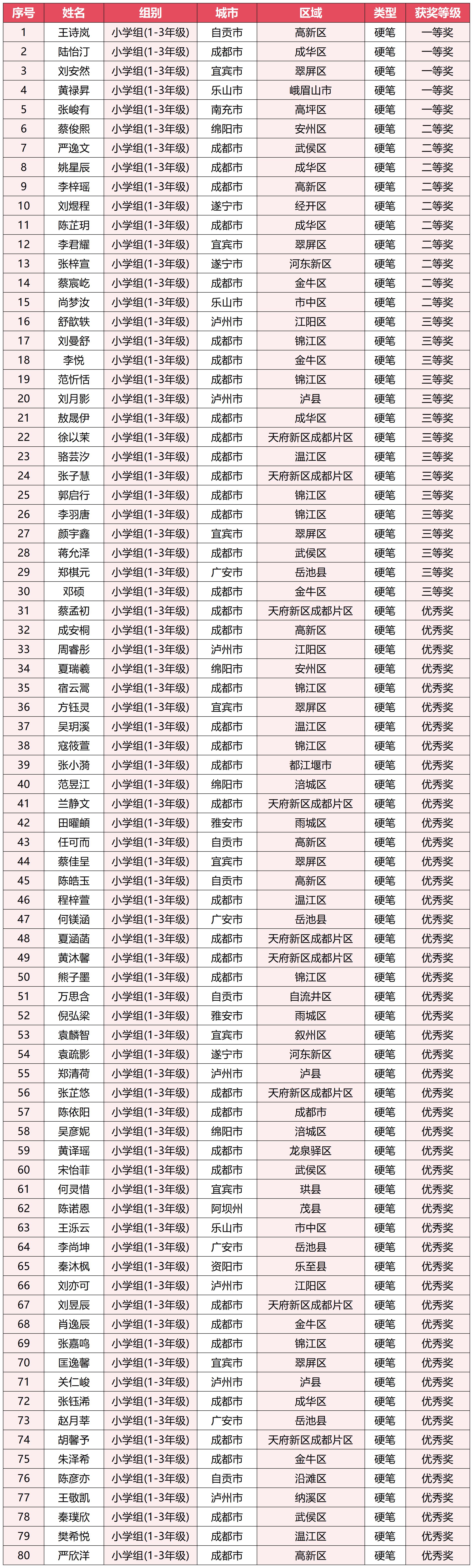 四川省第二届“书法人生·墨香校园”主题书法大展公益活动获奖名单公示