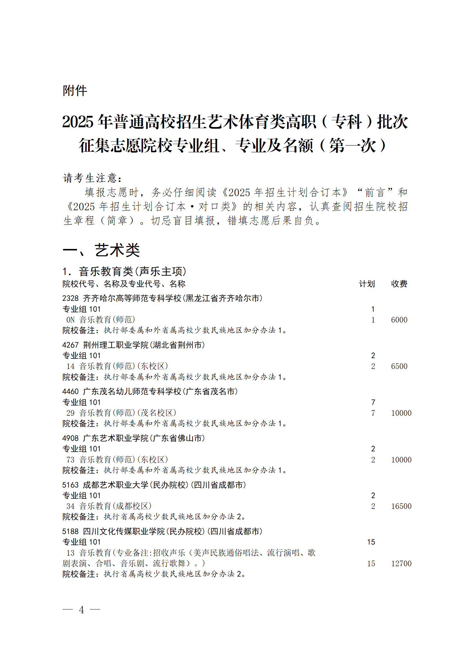 关于我省2025年艺术体育类高职(专科) 批次未完成计划院校第一次征集志愿的通知