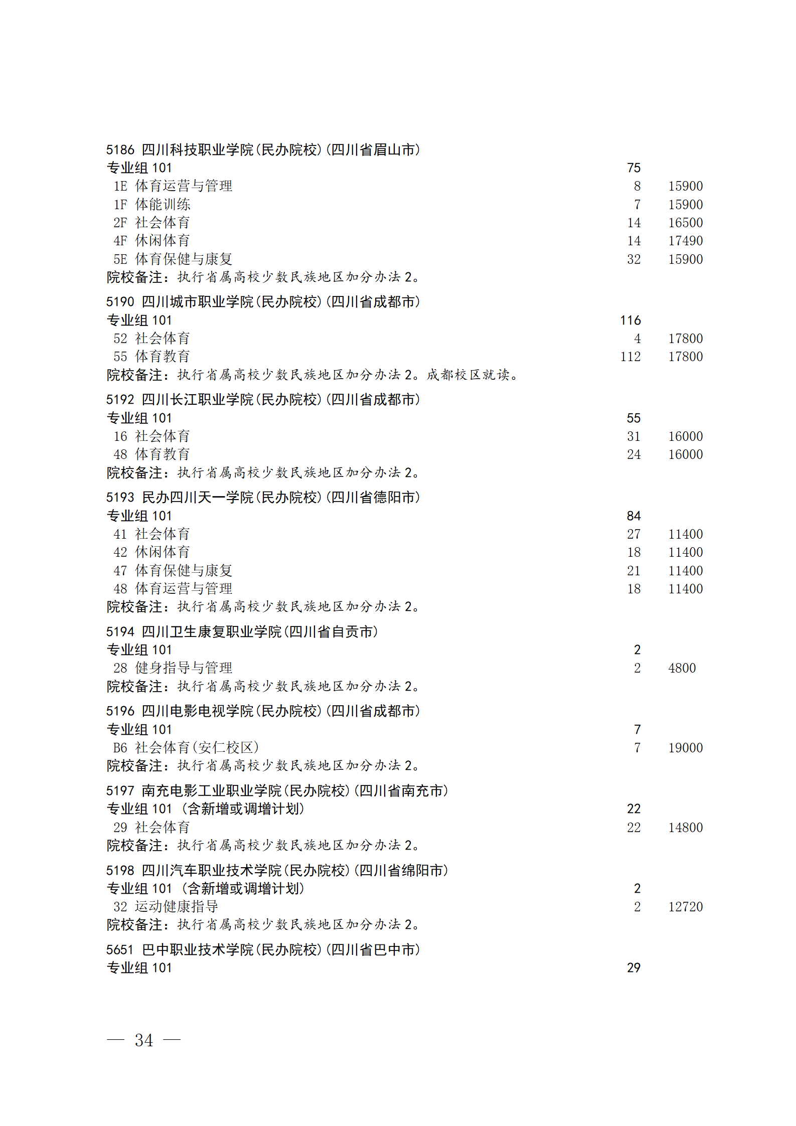 四川省2025年普通高校专升本招生专业及计划