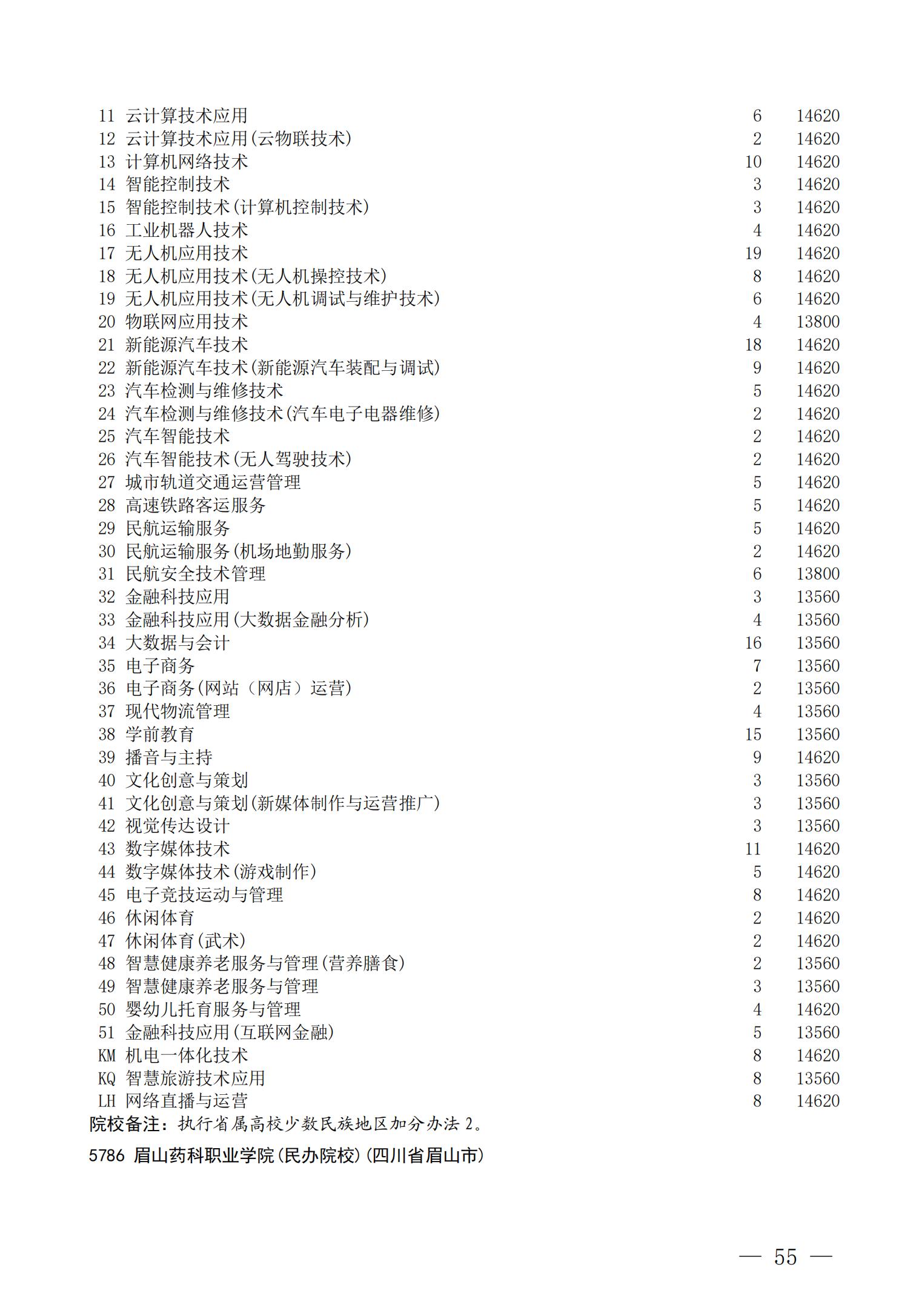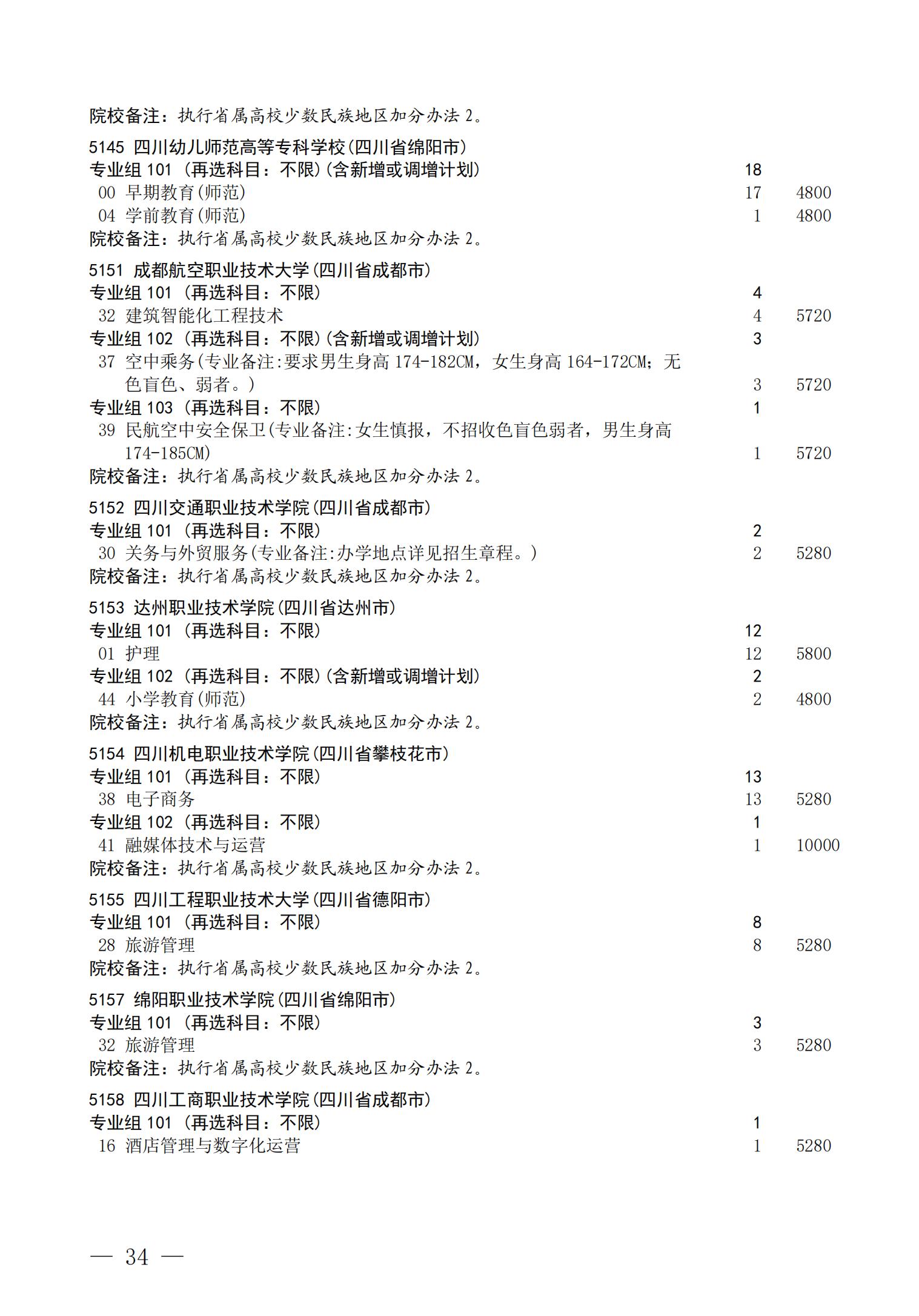 四川省2025年普通高校专升本招生专业及计划