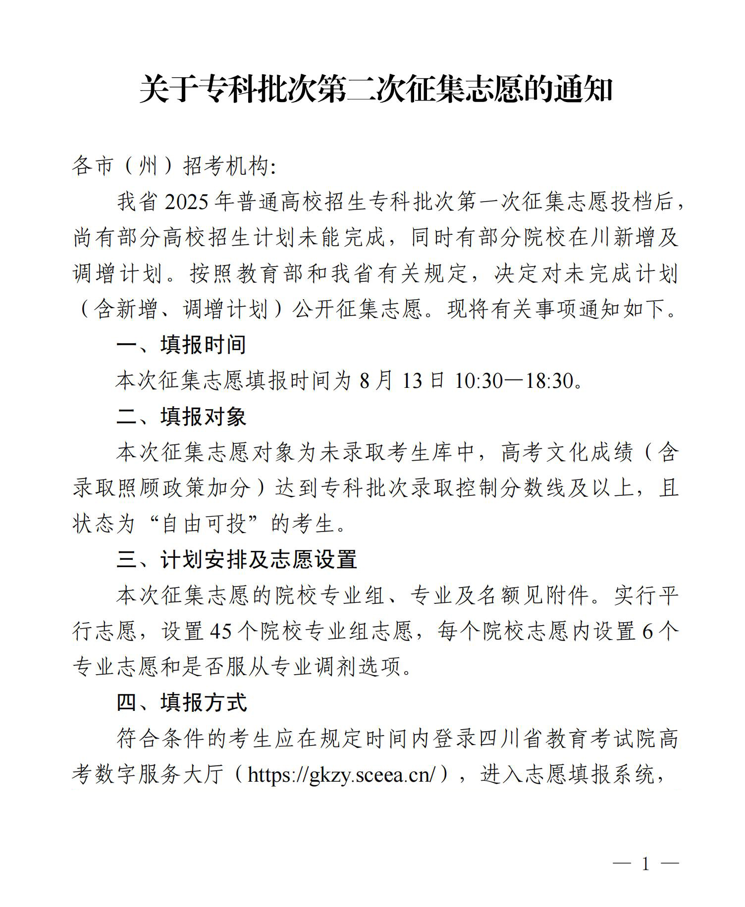 关于专科批次第二次征集志愿的通知(含历史类计划)