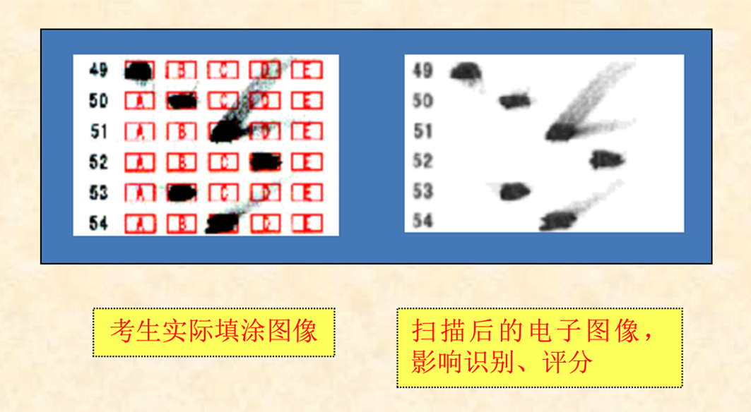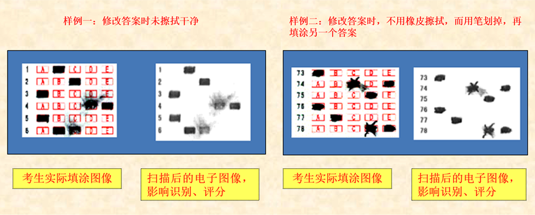 ▶若未正确修改,会影响计算机识别、评分,如下图所示: